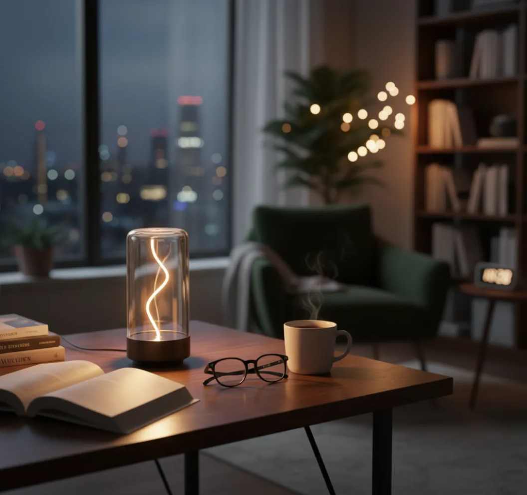 Creando un espacio de relajación y bienestar. Un Gadget, un accesorio, una lámpara